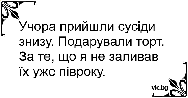 Учора прийшли сусіди знизу. Подарували торт. За те, що я не заливав їх уже півроку.