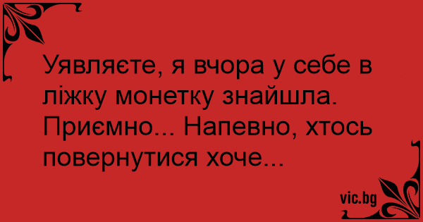 Уявляєте, я вчора у себе в ліжку монетку знайшла. Приємно... Напевно, хтось повернутися хоче...
