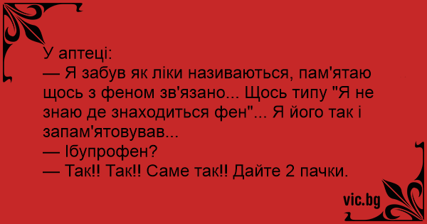 3. У аптеці: — Я забув як ліки...