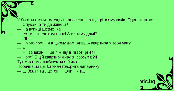 — Нічого собі! І я в цьому домі живу. А квартира у тебя яка?