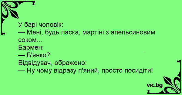 — Мені, будь ласка, мартіні з апельсиновим соком...