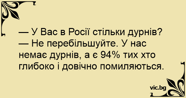 — Не перебільшуйте. У нас немає дурнів, а є 94% тих хто глибоко і довічно помиляються.