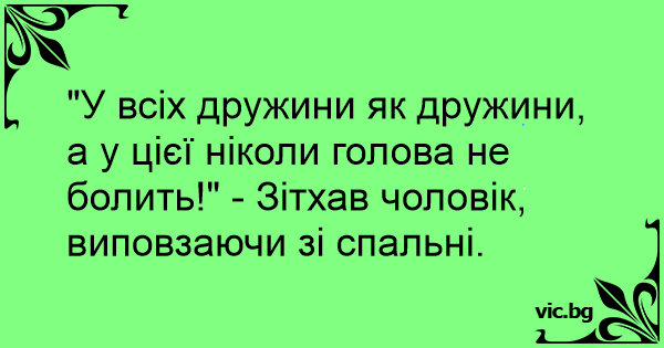 "У всіх дружини як дружини, а у цієї ніколи голова не болить!" - Зітхав чоловік, виповзаючи зі спальні.