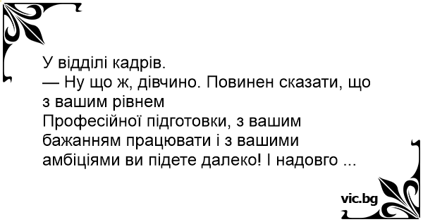 — Ну що ж, дівчино. Повинен сказати, що з вашим рівнем