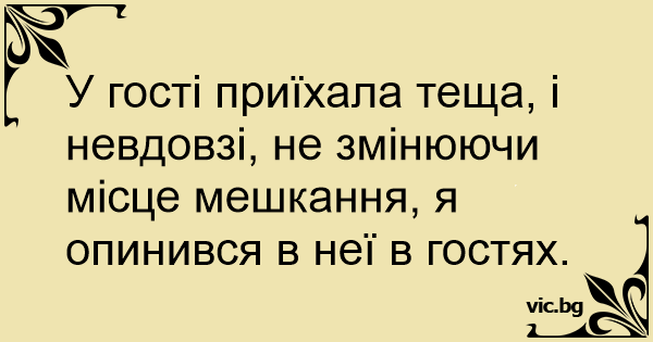 У гості приїхала теща, і невдовзі, не змінюючи місце мешкання, я опинився в неї в гостях.
