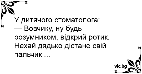 — Вовчику, ну будь розумником, відкрий ротик. Нехай дядько дістане свій пальчик ...