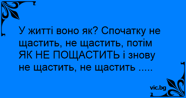 У житті воно як? Спочатку не щастить, не щастить, потім ЯК НЕ ПОЩАСТИТЬ і знову не щастить, не щастить .....