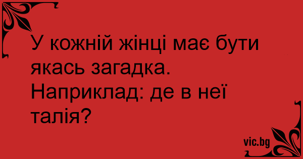У кожній жінці має бути якась загадка. Наприклад: де в неї талія?