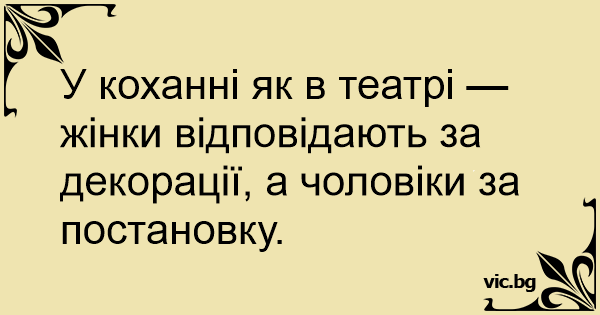 У коханні як в театрі — жінки відповідають за декорації, а чоловіки за постановку.