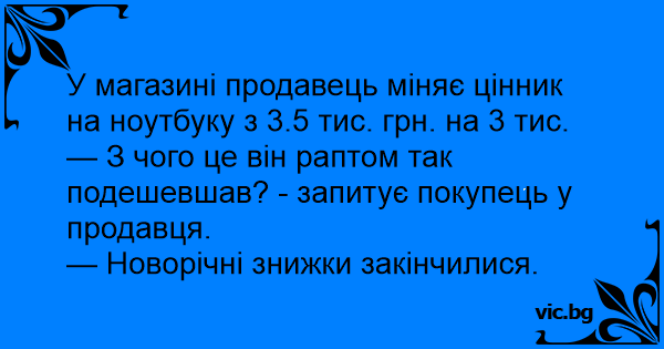 — З чого це він раптом так подешевшав? - запитує покупець у продавця.