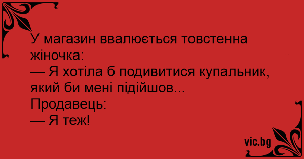 — Я хотіла б подивитися купальник, який би мені підійшов...