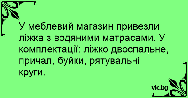 У меблевий магазин привезли ліжка з водяними матрасами. У комплектації: ліжко двоспальне, причал, буйки, рятувальні круги.