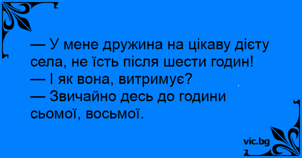 — У мене дружина на цікаву дієту села, не їсть після шести годин!