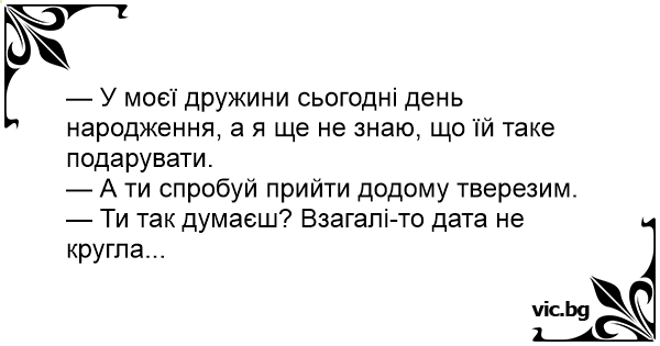 — У моєї дружини сьогодні день народження, а я ще не знаю, що їй таке подарувати.