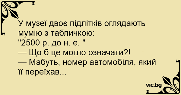 У музеї двоє підлітків оглядають мумію з табличкою: