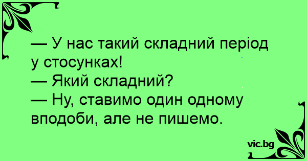 — Ну, ставимо один одному вподоби, але не пишемо.