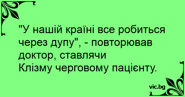 "У нашій країні все робиться через дупу", - повторював доктор, ставлячи