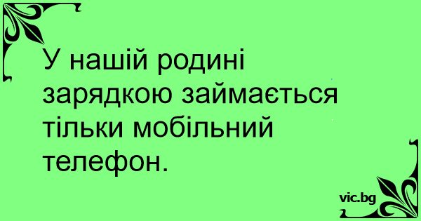 У нашій родині зарядкою займається тільки мобільний телефон. 0 0 0 Анекдоти про Спорт Анекдоти про лікарів та медицину