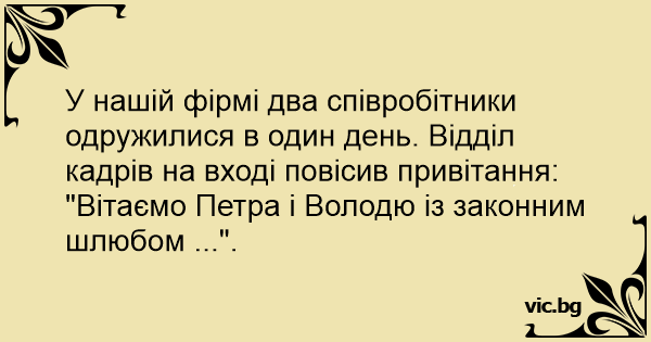 У нашій фірмі два співробітники одружилися в один день. Відділ кадрів на вході повісив привітання: