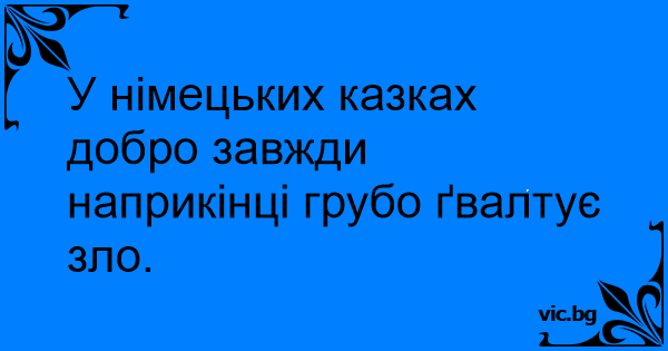 У німецьких казках добро завжди наприкінці грубо ґвалтує зло.