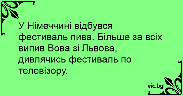 У Німеччині відбувся фестиваль пива. Більше за всіх випив Вова зі Львова, дивлячись фестиваль по телевізору.