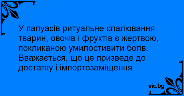 У папуасів ритуальне спалювання тварин, овочів і фруктів є жертвою, покликаною умилостивити богів.