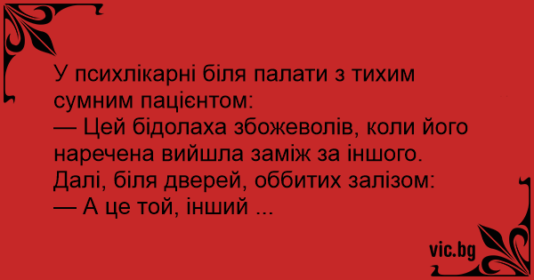 У психлікарні біля палати з тихим сумним пацієнтом: