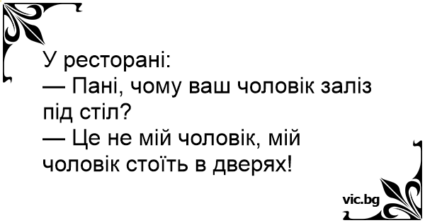— Це не мій чоловік, мій чоловік стоїть в дверях!