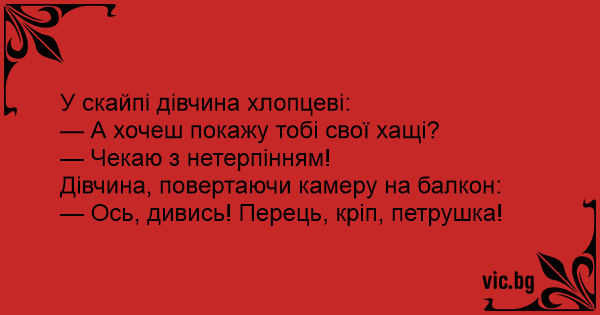 У скайпі дівчина хлопцеві:...