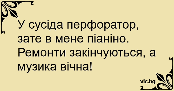 У сусіда перфоратор, зате в мене піаніно. Ремонти закінчуються, а музика вічна!