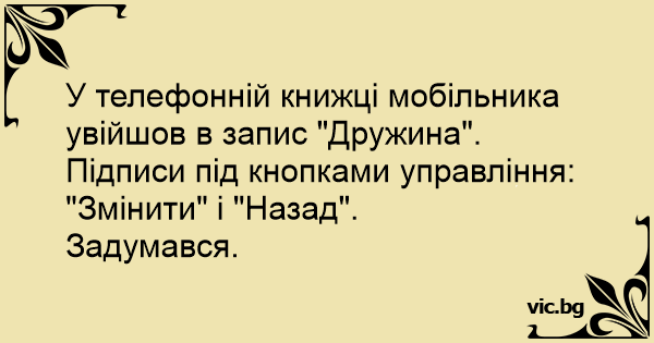 У телефонній книжці мобільника увійшов в запис "Дружина". Підписи під кнопками управління: