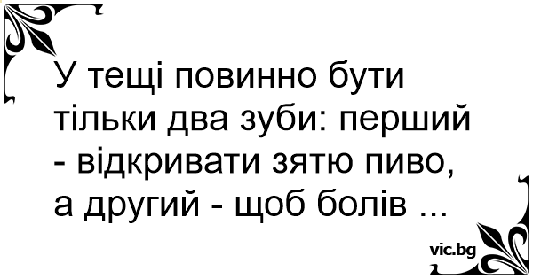 У тещі повинно бути тільки два зуби: перший - відкривати зятю пиво, а другий - щоб болів ...