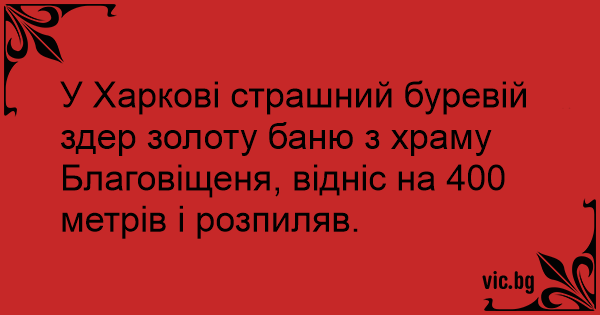 У Харкові страшний буревій здер золоту баню з храму Благовіщеня, відніс на 400 метрів і розпиляв.