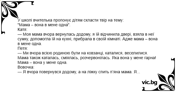 У школі вчителька пропонує дітям скласти твір на тему: