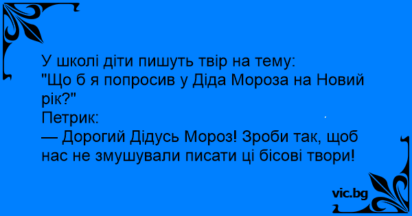 — Дорогий Дідусь Мороз! Зроби так, щоб нас не змушували писати ці бісові твори!