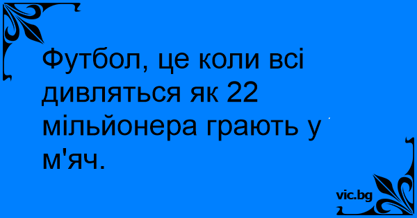 Футбол, це коли всі дивляться як 22 мільйонера грають у м'яч.