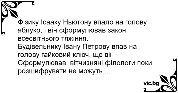 Фізику Ісааку Ньютону впало на голову яблуко, і він сформулював закон всесвітнього тяжіння.