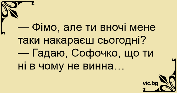 — Фімо, але ти вночі мене таки накараєш сьогодні?