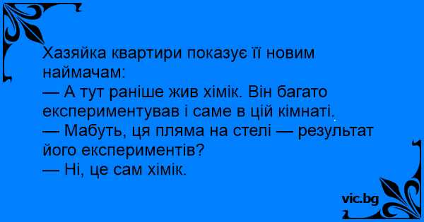— Мабуть, ця пляма на стелі — результат його експериментів?