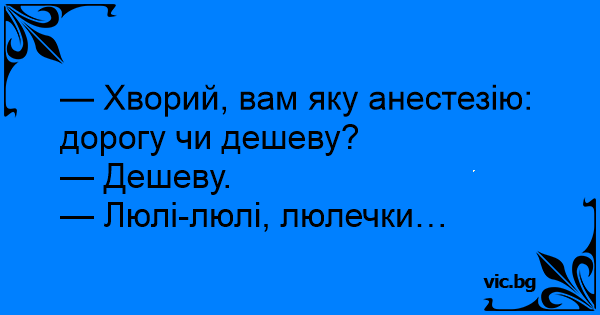 — Хворий, вам яку анестезію: дорогу чи дешеву?