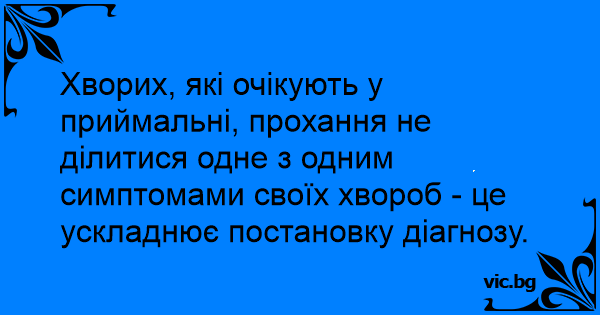 Хворих, які очікують у приймальні, прохання не ділитися одне з одним симптомами своїх хвороб - це ускладнює постановку діагнозу.