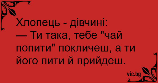 — Ти така, тебе "чай попити" покличеш, а ти його пити й прийдеш.
