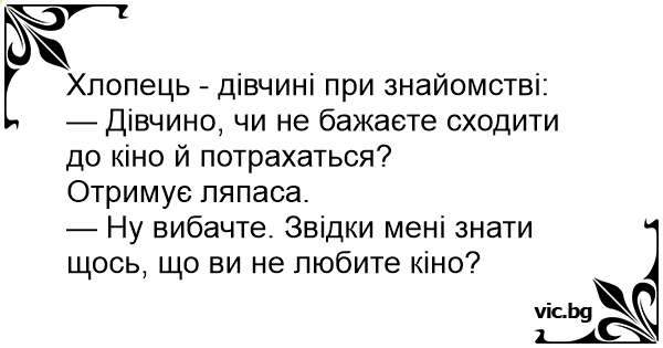 — Дівчино, чи не бажаєте сходити до кіно й потрахаться?