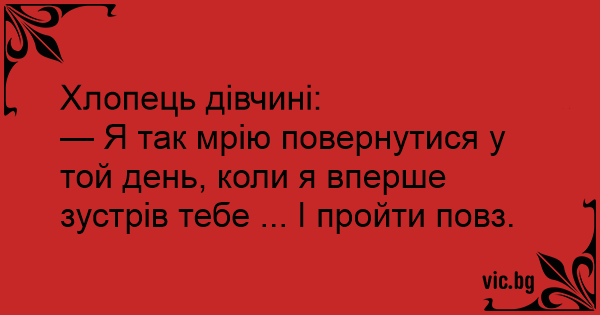 — Я так мрію повернутися у той день, коли я вперше зустрів тебе ... І пройти повз.