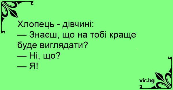 — Знаєш, що на тобі краще буде виглядати?