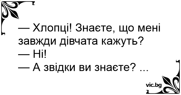 — Хлопці! Знаєте, що мені завжди дівчата кажуть?
