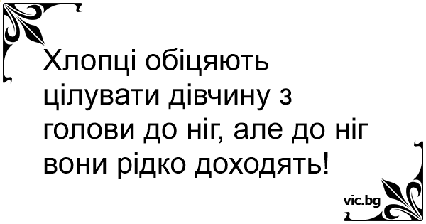 Хлопці обіцяють цілувати дівчину з голови до ніг, але до ніг вони рідко доходять!