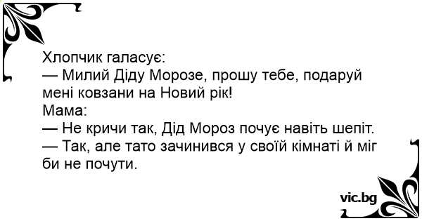 — Не кричи так, Дід Мороз почує навіть шепіт.