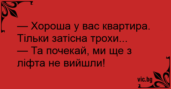 — Та почекай, ми ще з ліфта не вийшли!