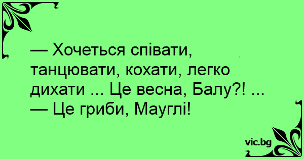 — Хочеться співати, танцювати, кохати, легко дихати ... Це весна, Балу?! ...